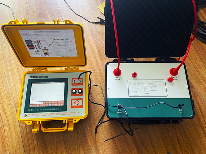 GDBN-OH01電纜測(cè)試多次脈沖耦合器與GDBN-C2000電纜多次脈沖故障測(cè)距儀和高壓信號(hào)發(fā)生器配合使用,用于檢測(cè)各種電力電纜的高阻泄漏故障、閃絡(luò)性故障、低阻接地和斷路故障。GDBN-OH01為GDBN-C2000電纜多次脈沖故障測(cè)距儀提供脈沖信號(hào)耦合通路,同時(shí)實(shí)現(xiàn)了與高壓設(shè)備的電氣隔離。它采用目前國(guó)際上最先進(jìn)的“多次脈沖法”技術(shù),使電纜故障波形的判斷變得簡(jiǎn)單方便。